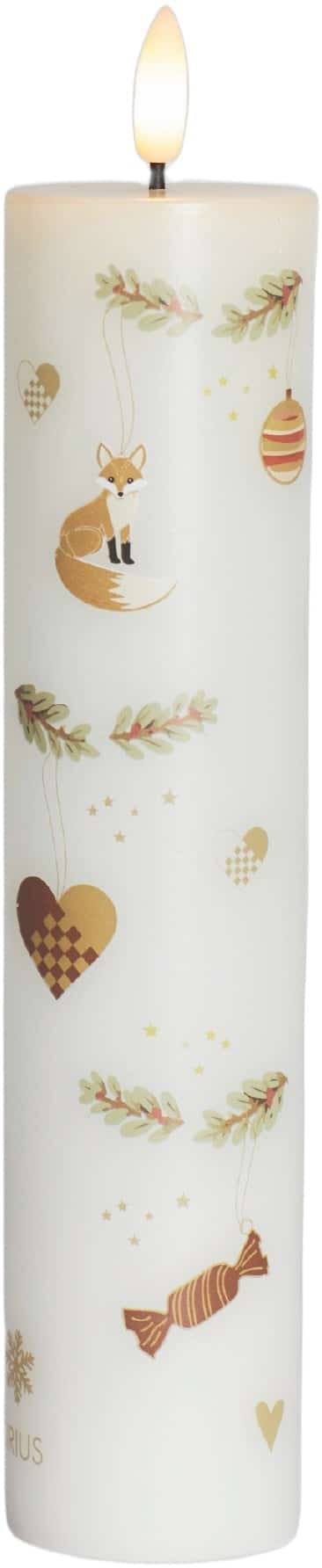 LED bloklys med julemotiv, 3D flammen lyser med et varmt hvidt lys